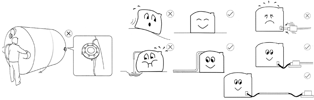 9.在桶上安裝攪拌機等較重的附屬設備時,或人須上罐頂作業而不能承受人的體重時,請另做架子或人梯,并注意作業安全。